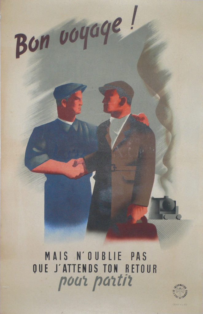 This French WW2 poster is made to reminf workers to return from their holidays! I like the cubist-style loco. The poster is unsigned, but quite well designed.